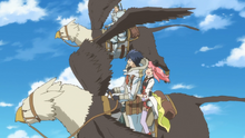 On the trip home Tetora states she wanted to ride with Naotsugu, but he insists his armor is heavy so his griffin doesn't like carrying two. She teases that maybe it's a special seat for someone, an accusation which he dismisses. Shiroe tells Tetora not to tease Naotsugu too much, to which she replies that it's not fun unless she teases him too much. He asks her when she will tell Naotsugu that she's a boy (presumably in real life), she opts to keep the secret out of fun. Shiroe then mentions it's a delicate time for Naotsugu and Marielle, hoping Tetora won't cause problems for them. Naotsugu asks why Shiroe added her to Log Horizon and was told that Kazuhiko recommended her. She says Shiroe can save more people than she can and the world won't let him stay uninvolved.