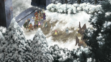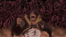 While Shiroe is negotiating with the Kunie Clan, William fires the fatal blow to Ibura Habura of Third Prison, allowing the Abyssal Shaft Raid Party to focus their attention on Tarutauruga of Fourth Prison. Meanwhile, Demiqas is still kiting all of the Shadow Vanguard, keeping them away from Shiroe and the party members who are fighting the raid boss.